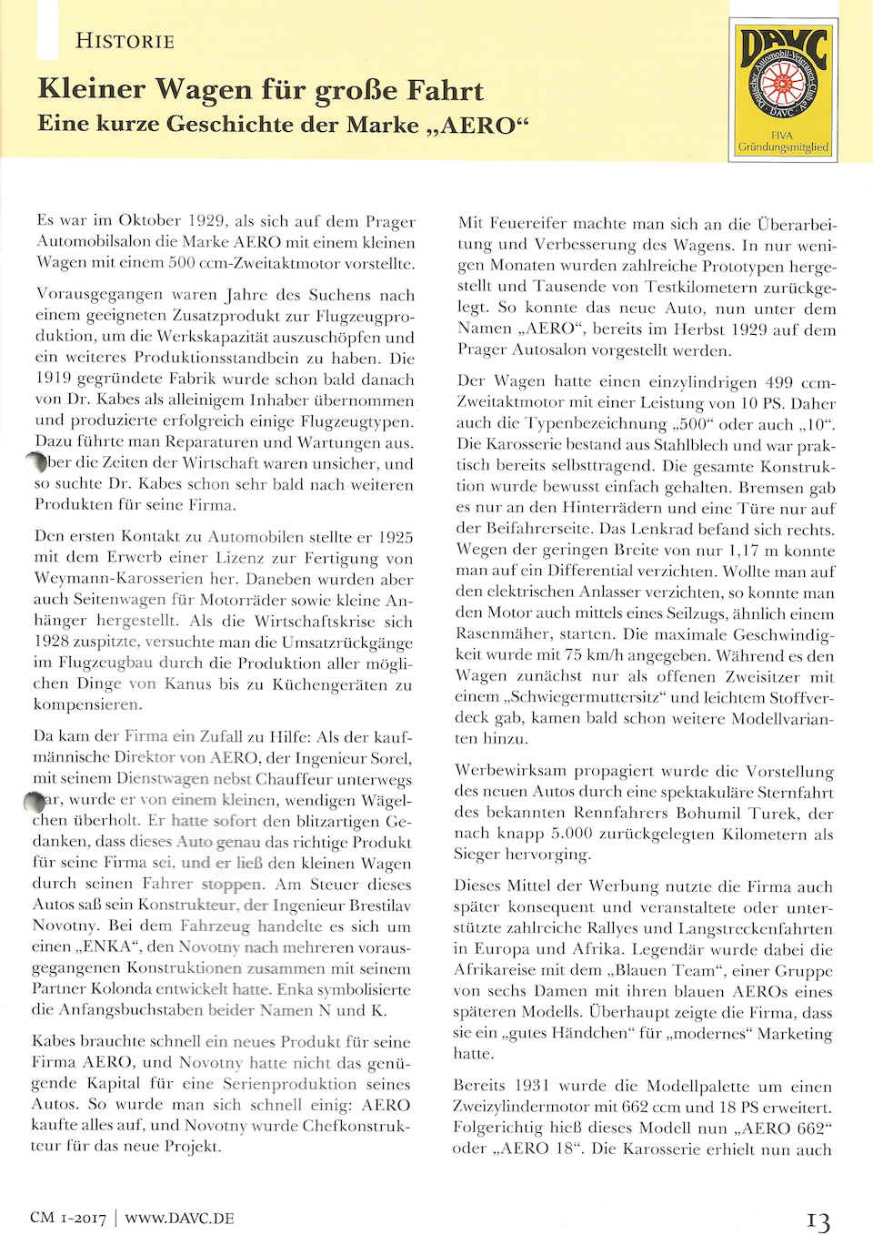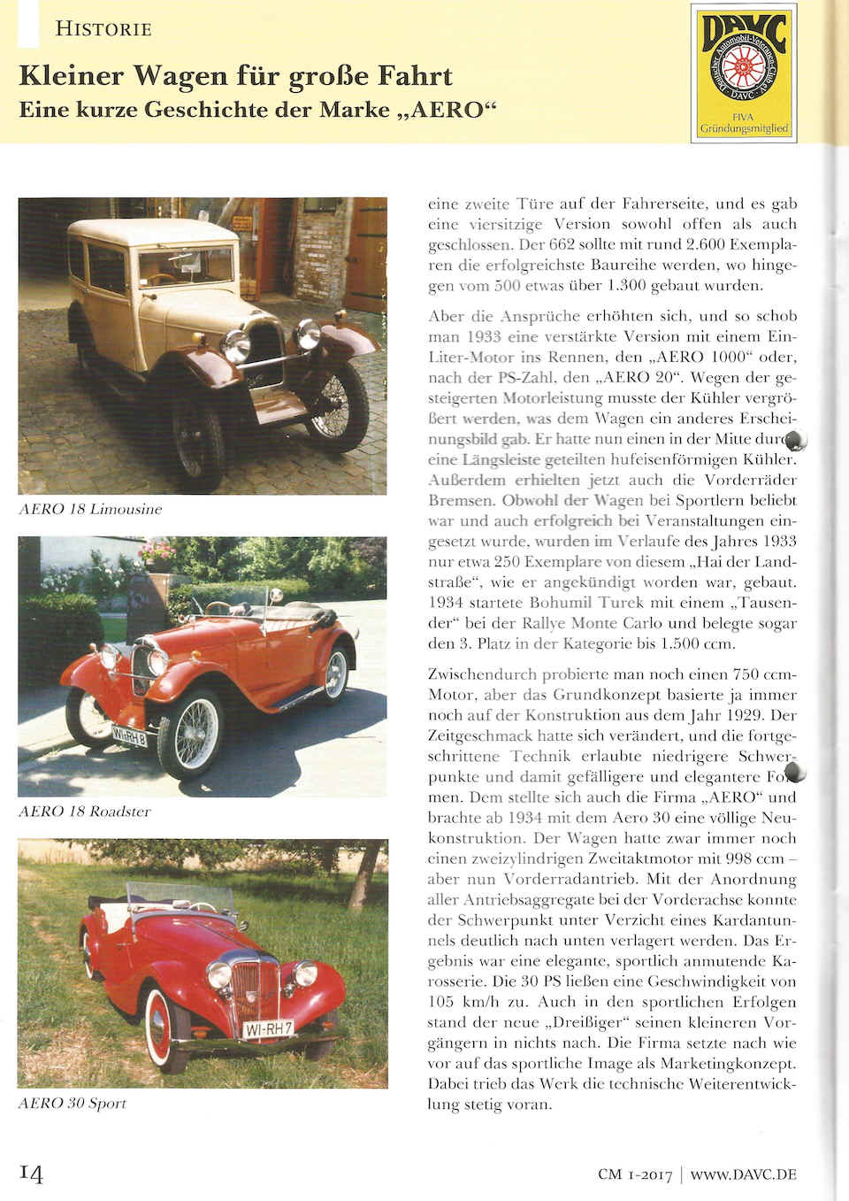 Anmerkung: Auf Seite 15 muss die letzte Bildunterschrift lauten: AERO 50-Arizona